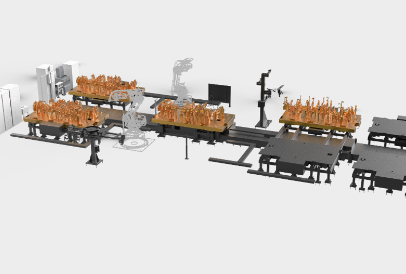 The Bodyside line, industrial robots and automatic equipment such as accumulator conveyor are used to realize fully automated production such as welding, gluing and handling.